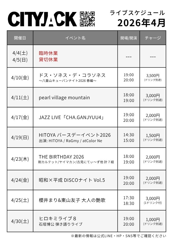 2026年4月ライブスケジュール